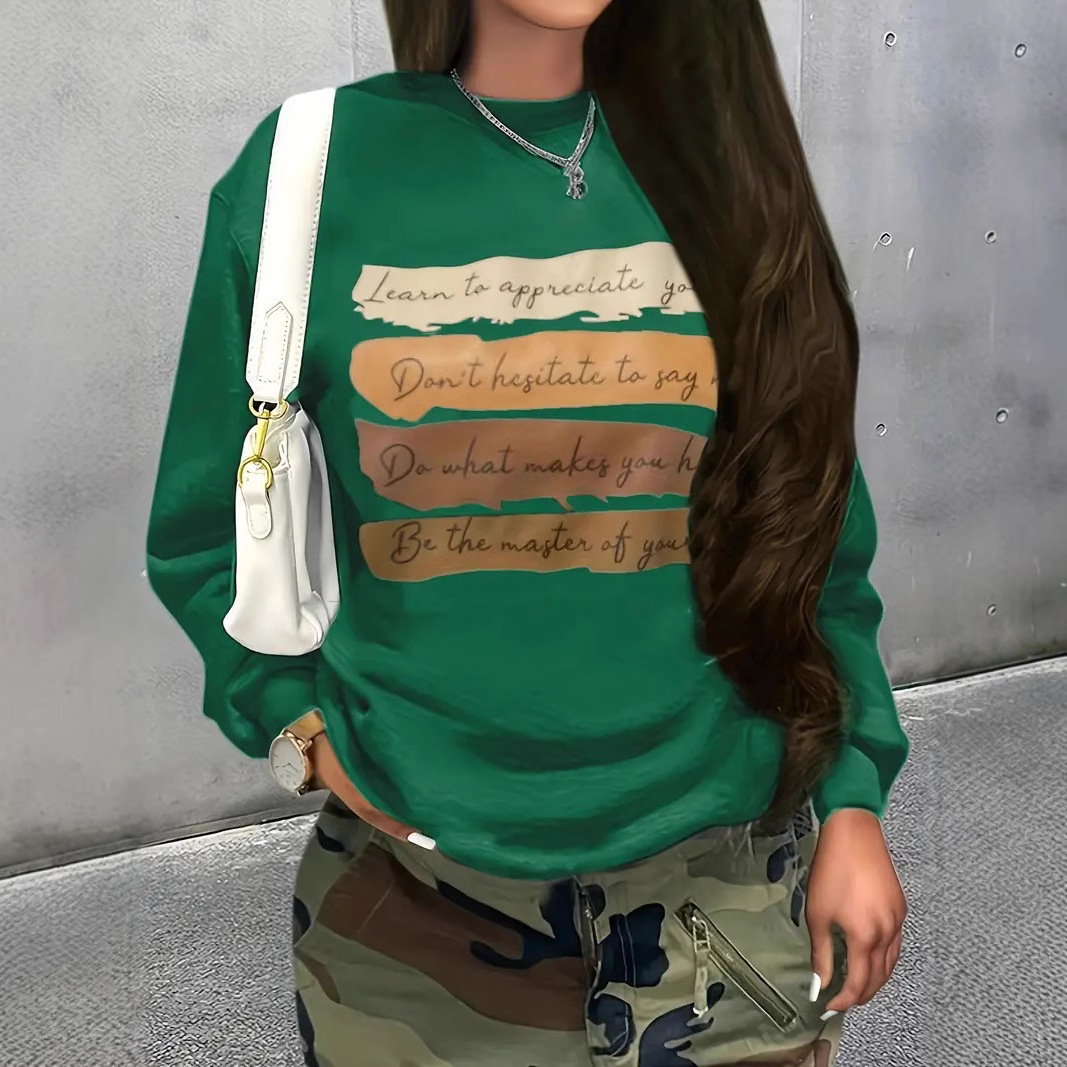 2024跨境TEMU新款字母印花圆领长袖休闲卫衣女士上衣POD一件定 制