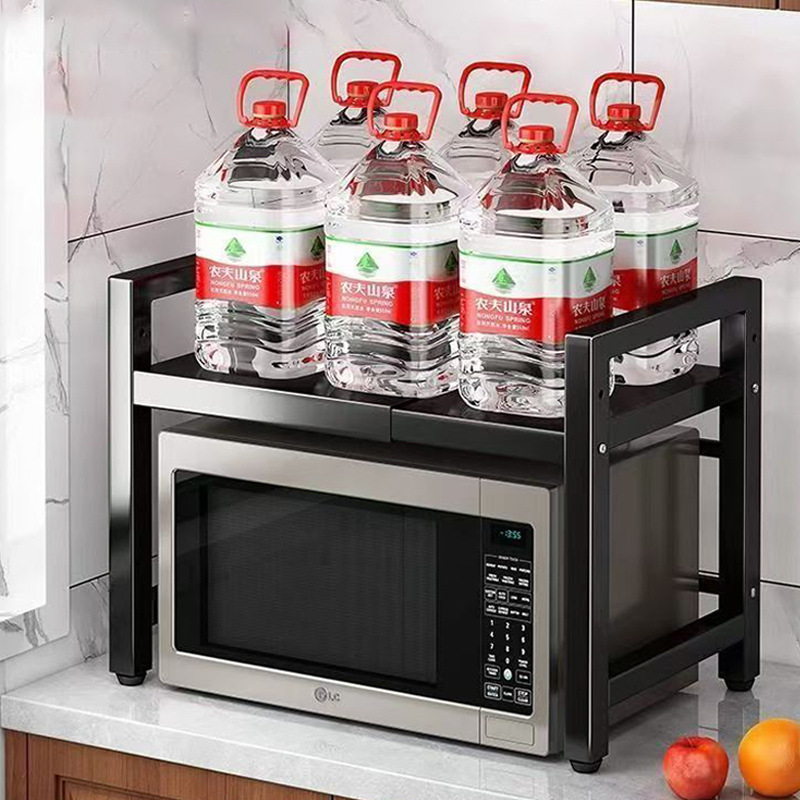 厨房置物架微波炉可伸缩家用双层烤箱架子台面厨具多用途置物架