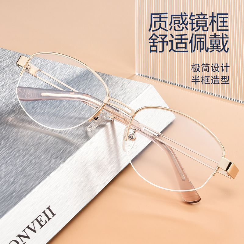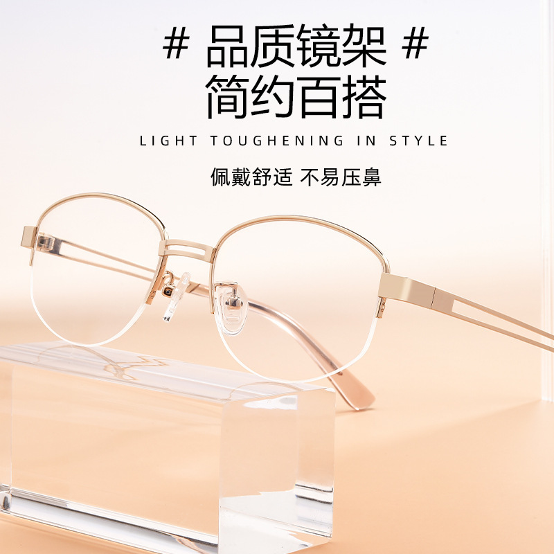 老钱风fakeme同款半框眼镜框素颜高级感近视眼镜女丹阳眼镜批发