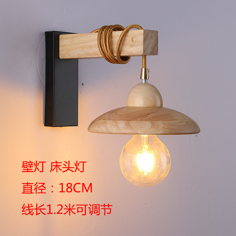 日式木艺床头壁灯卧室简约现代实木中式北欧创意客厅过道酒店灯具