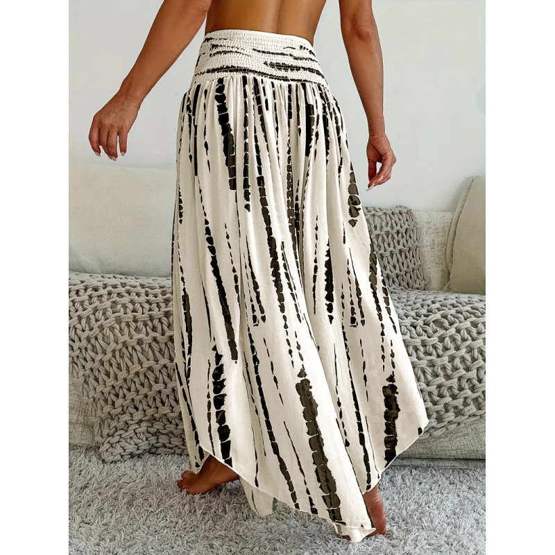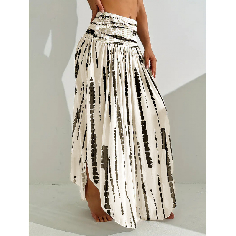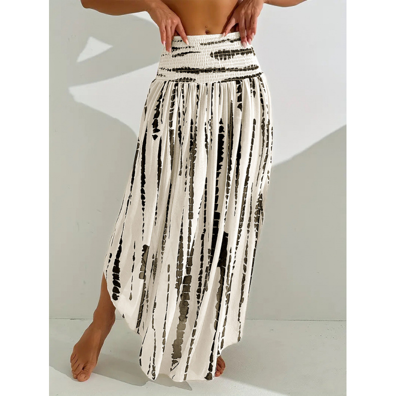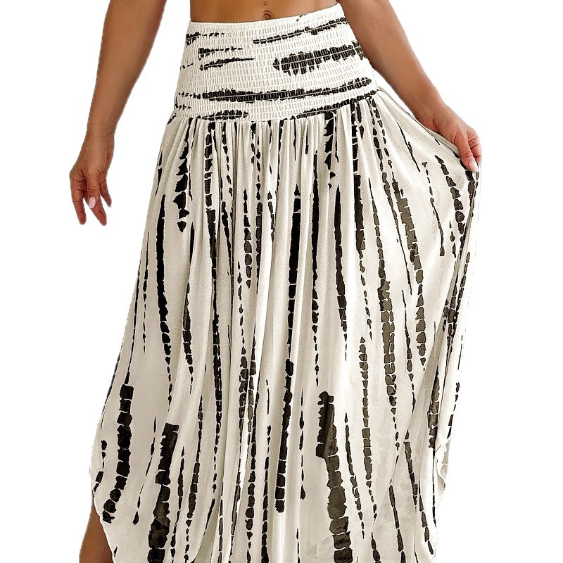 亚马逊独立站跨境外贸女装海边度假风松紧高腰印花半身裙