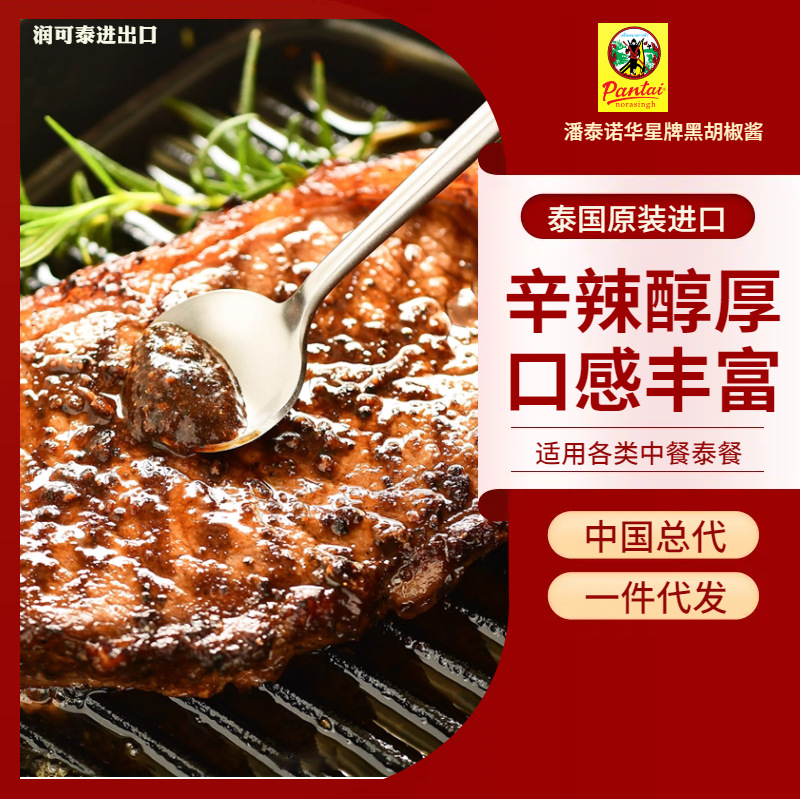 原装进口潘泰诺华星牌黑胡椒酱12*730ml专用家用牛排酱汁商用批发
