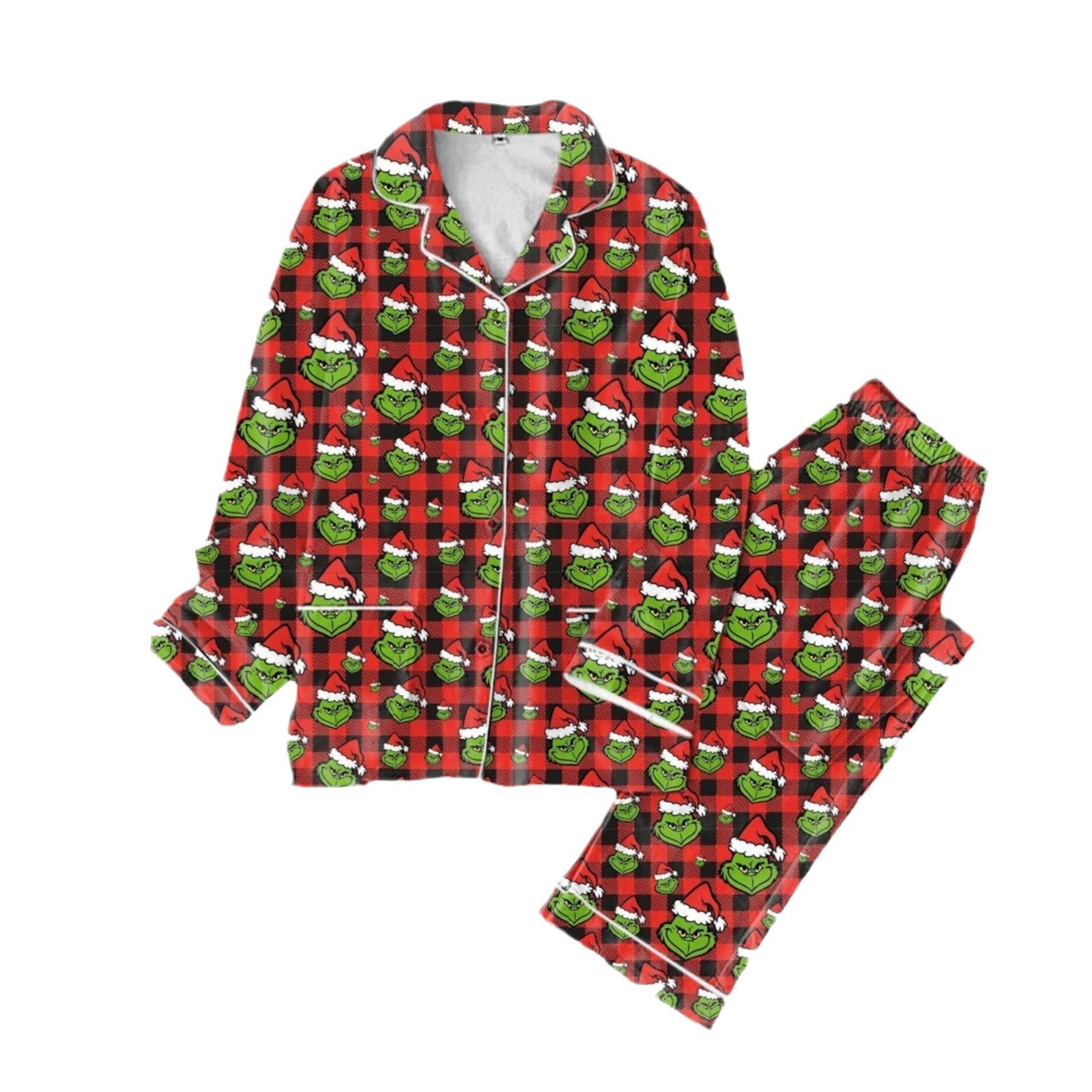 2024欧美外贸休闲套装亲子时尚印花圣诞睡衣大码气质一件POD定 制