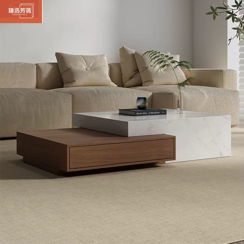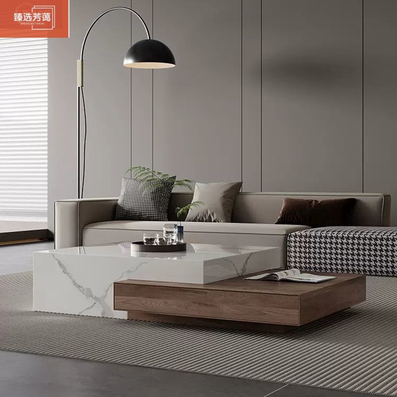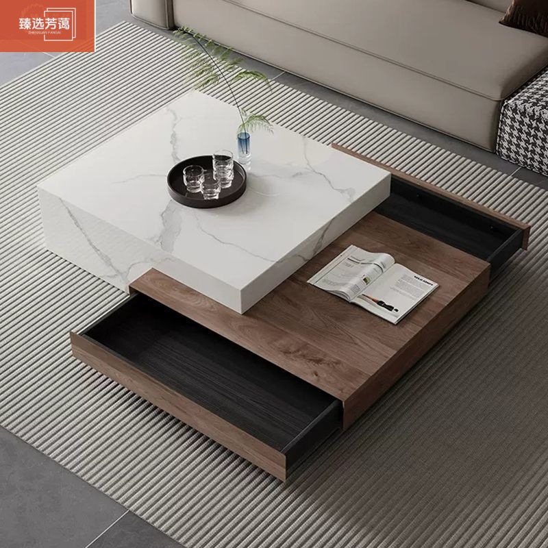 伸缩仿实木意式现代轻奢方形茶几高级小户型客厅简约家用组合极简