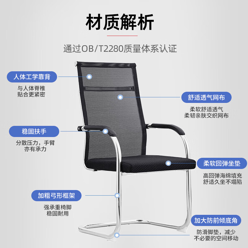 弓形办公椅电脑椅靠背职员椅透气麻将椅办公椅网布椅宿舍会议椅子