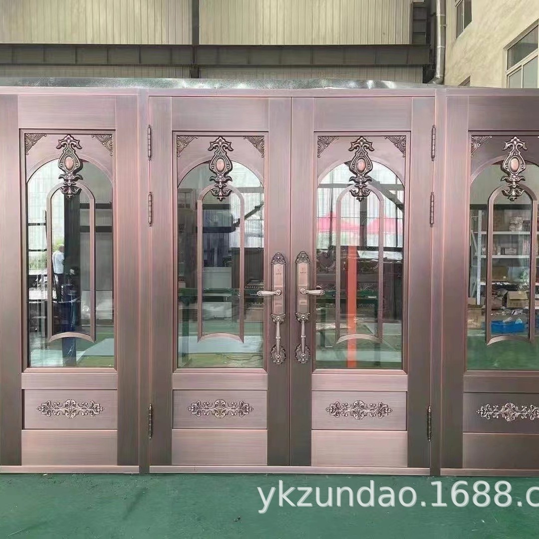 四川南充不锈钢镀铜玻璃大门眉山钢铜大门广安不锈钢铜门