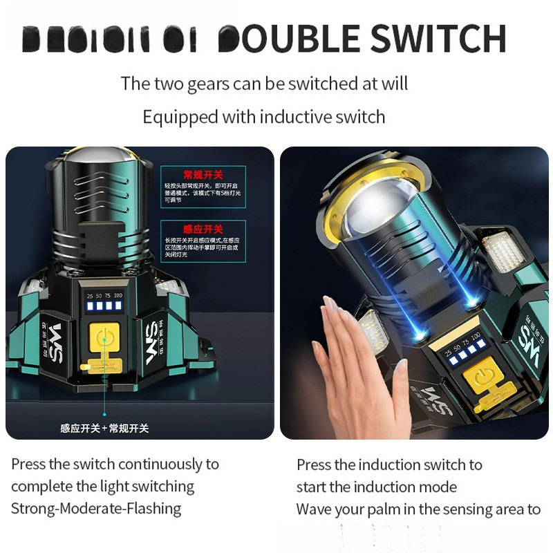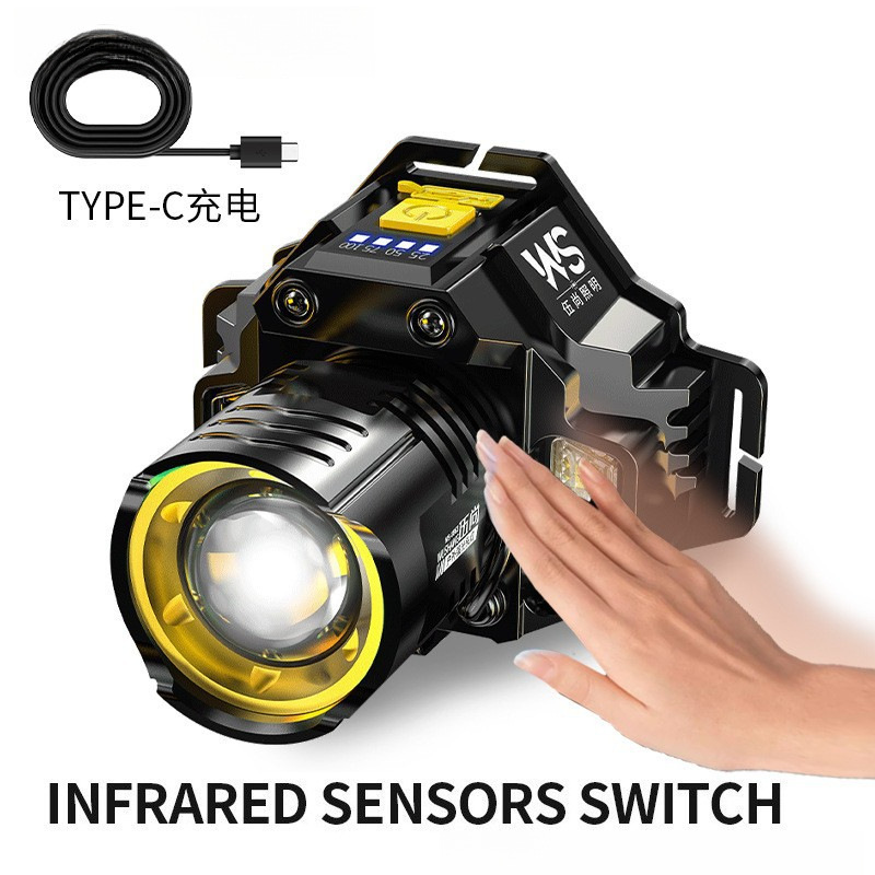 大客超亮强光夜钓灯感应矿灯强光充电应急智能头戴式户外照明头灯