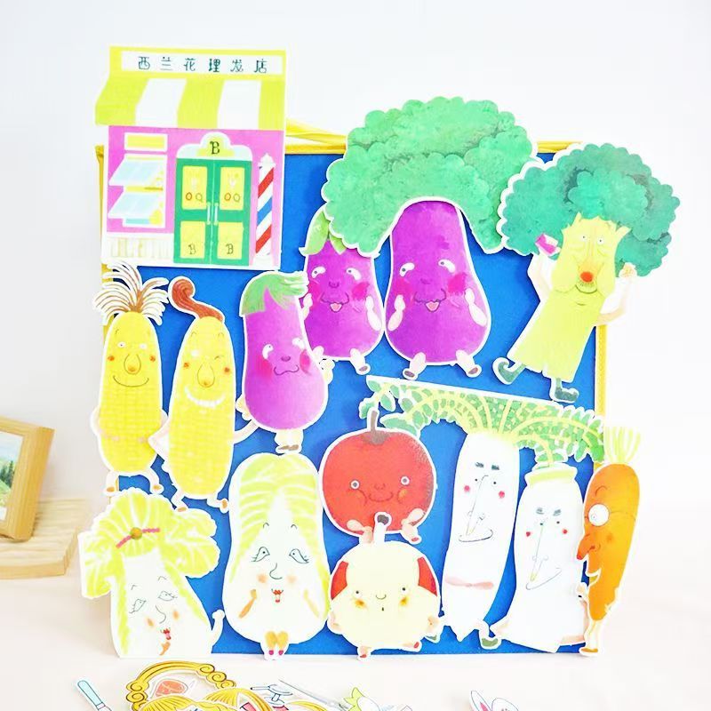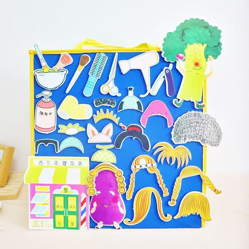 西兰花先生的理发店绘本故事毛毡玩具幼儿园儿童早教教具益智套装