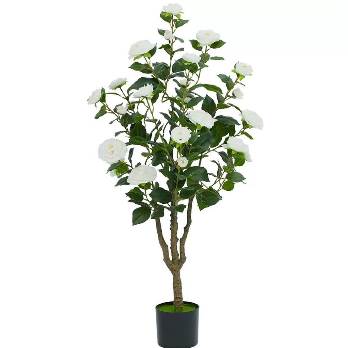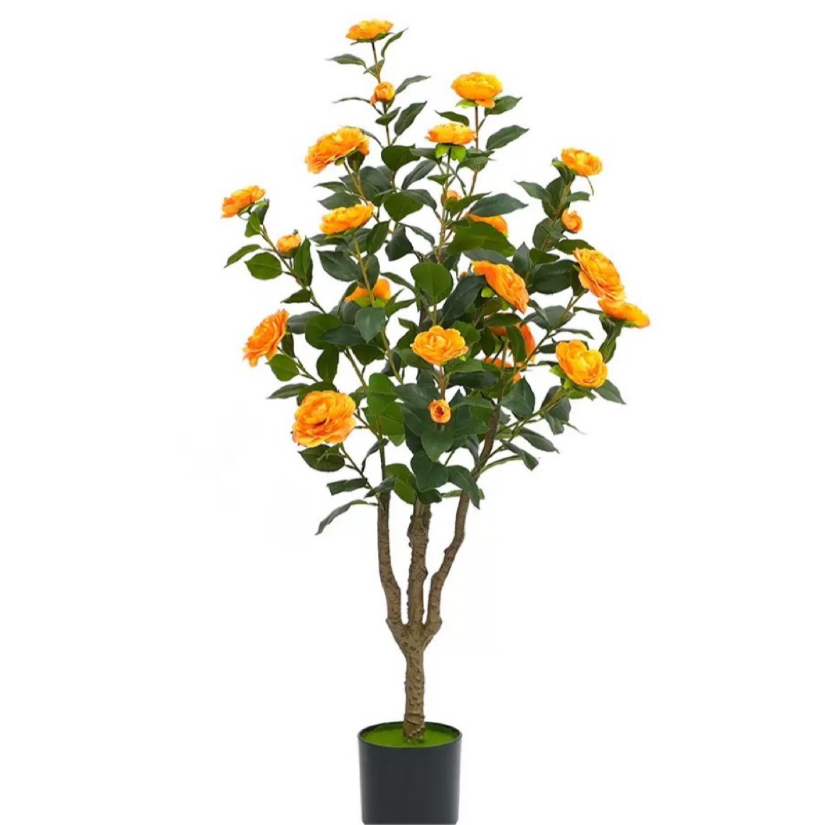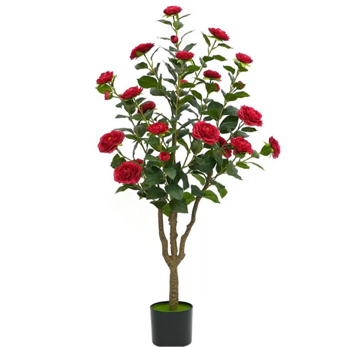 跨境人造茶花树盆栽仿真茶玫花树居家橱窗造景设计装饰假山茶花树