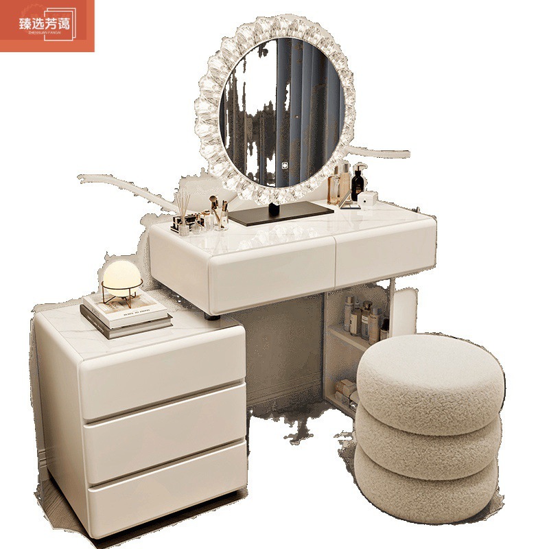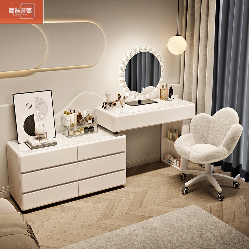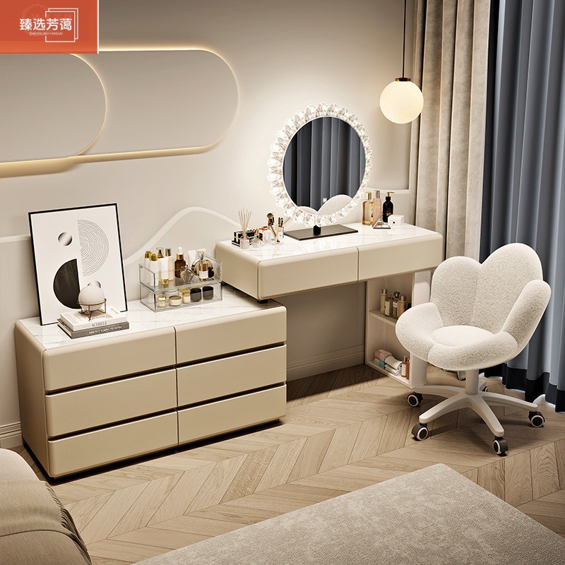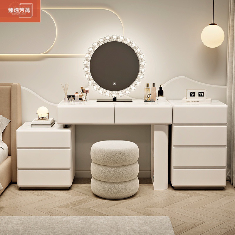 奶白甄选梳妆台主卧室斗柜一体现代简约化妆桌床头柜小户型奶油风