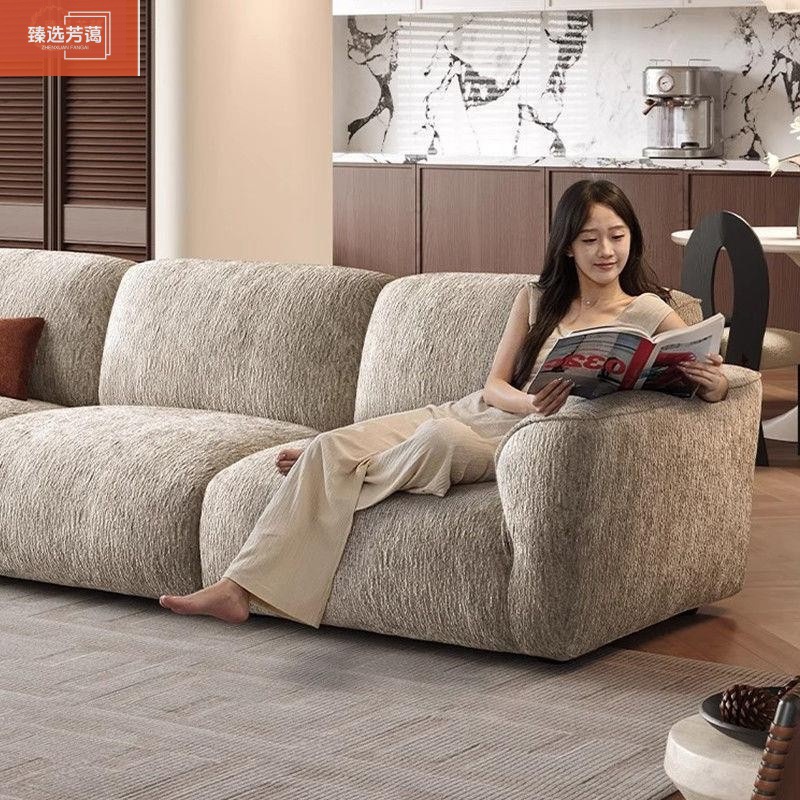 日式雪尼尔绒沙发简约客厅直排布艺沙发家用小户型意式轻奢绒沙发