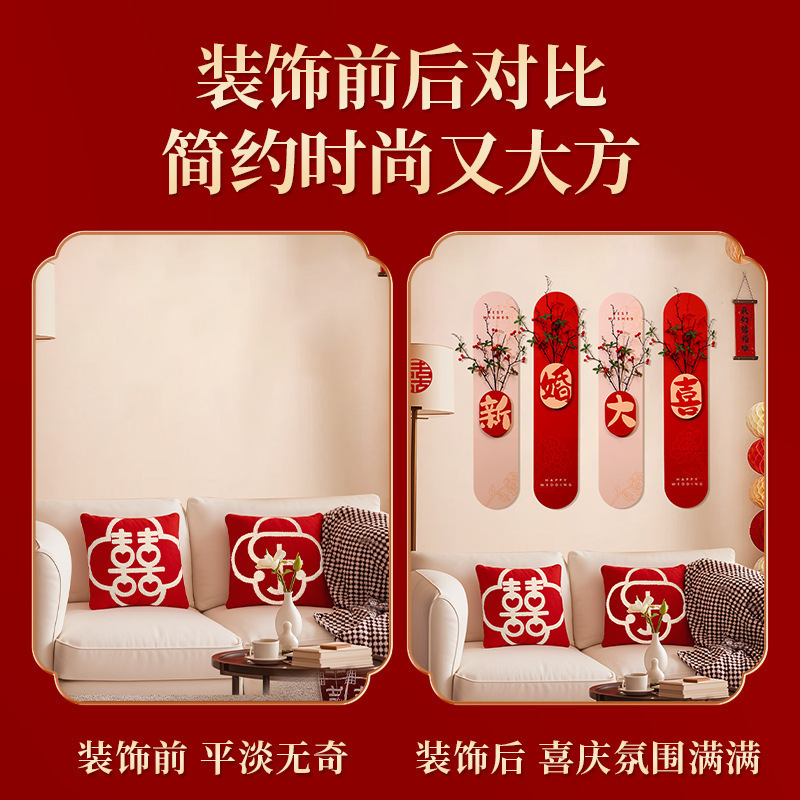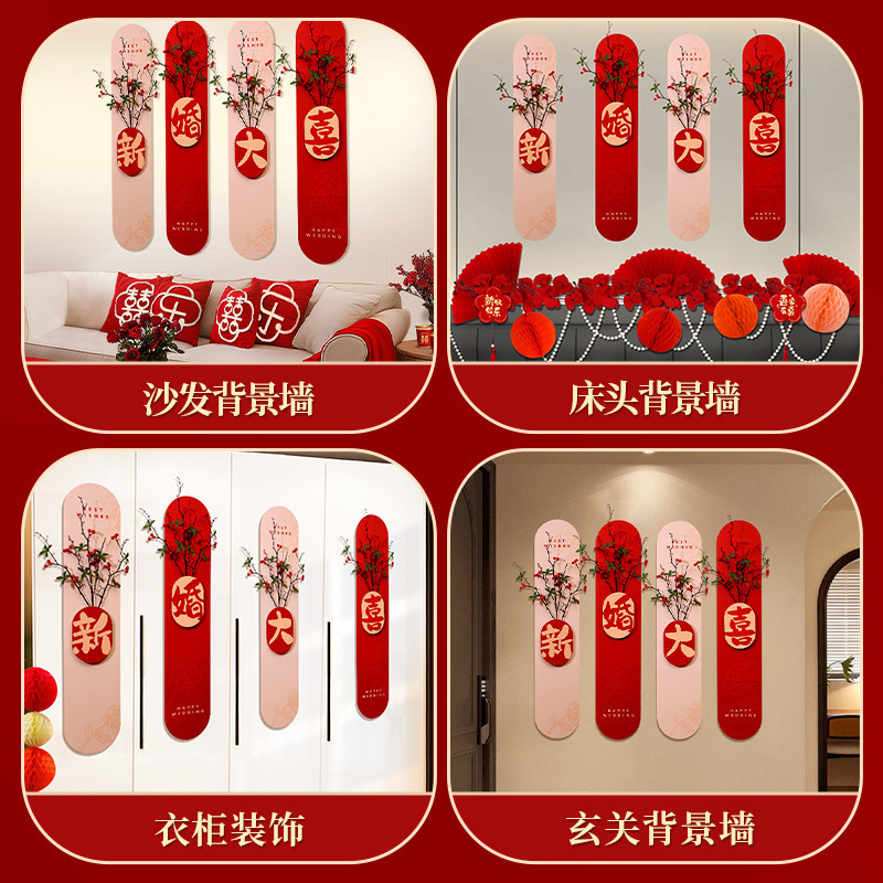 婚房布置套装结婚客厅新房装饰男方女方喜字板婚礼婚庆用品批发