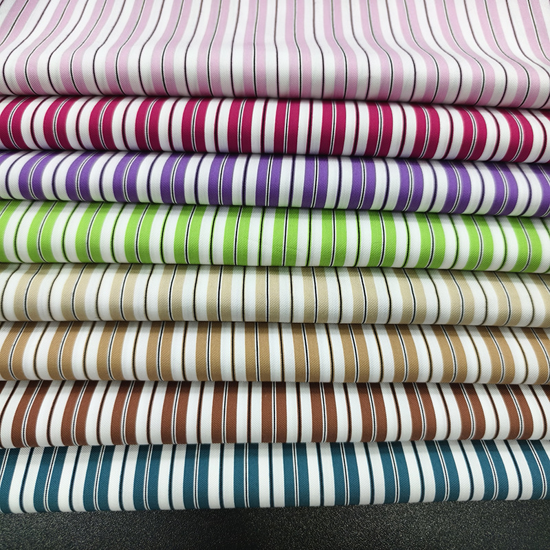 新款天丝斜纹色织条纹面料 天丝混纺条子布料