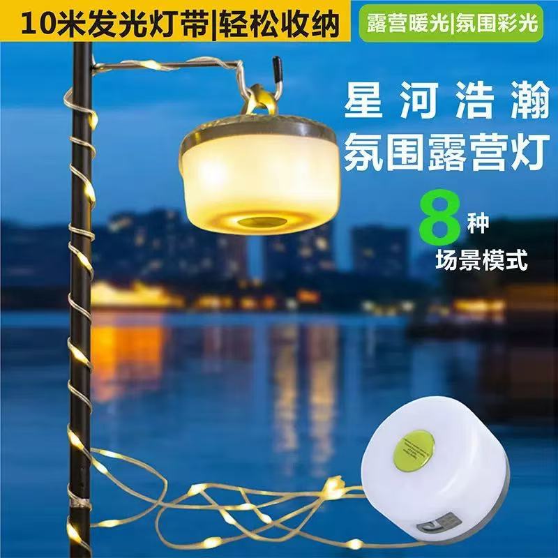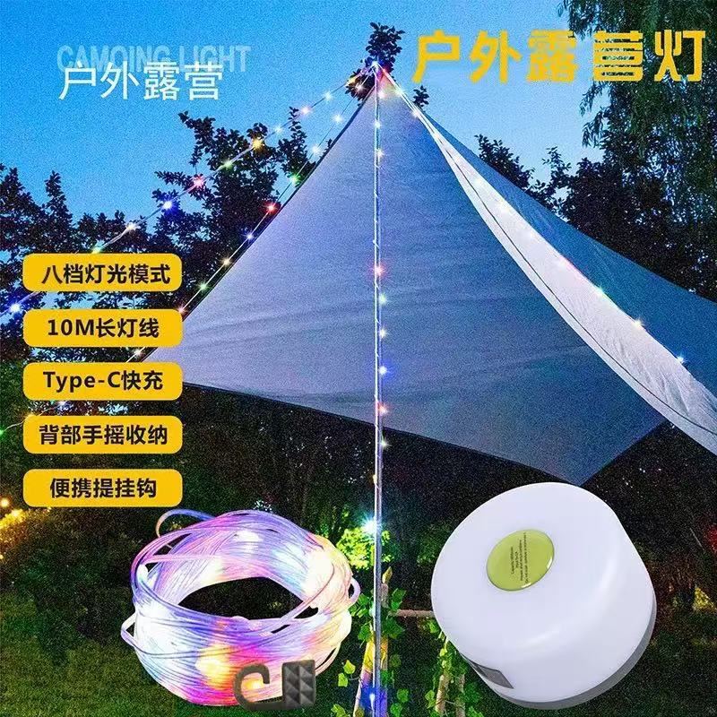 跨境畅销户外露营串灯卷尺收纳灯LED彩色变光帐篷灯长续航氛围灯
