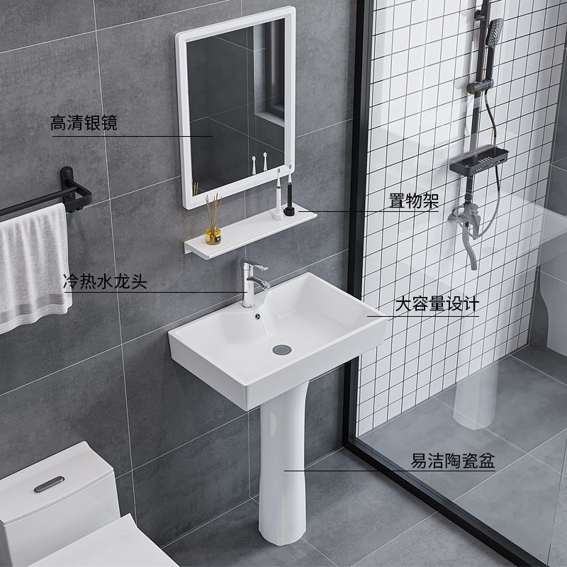 小户型立柱家用一体落地式陶瓷洗手盆阳台立柱式洗脸盆卫生间洗漱