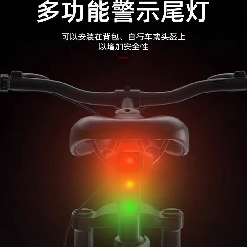 跨境新款自行车尾灯USB充电款三色变光交通尾灯长续航夜间警示灯
