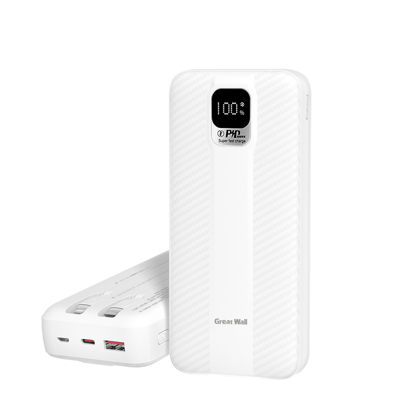 自带线充电宝快充可上飞机20000mAh大容量移动电源长续航国标3C