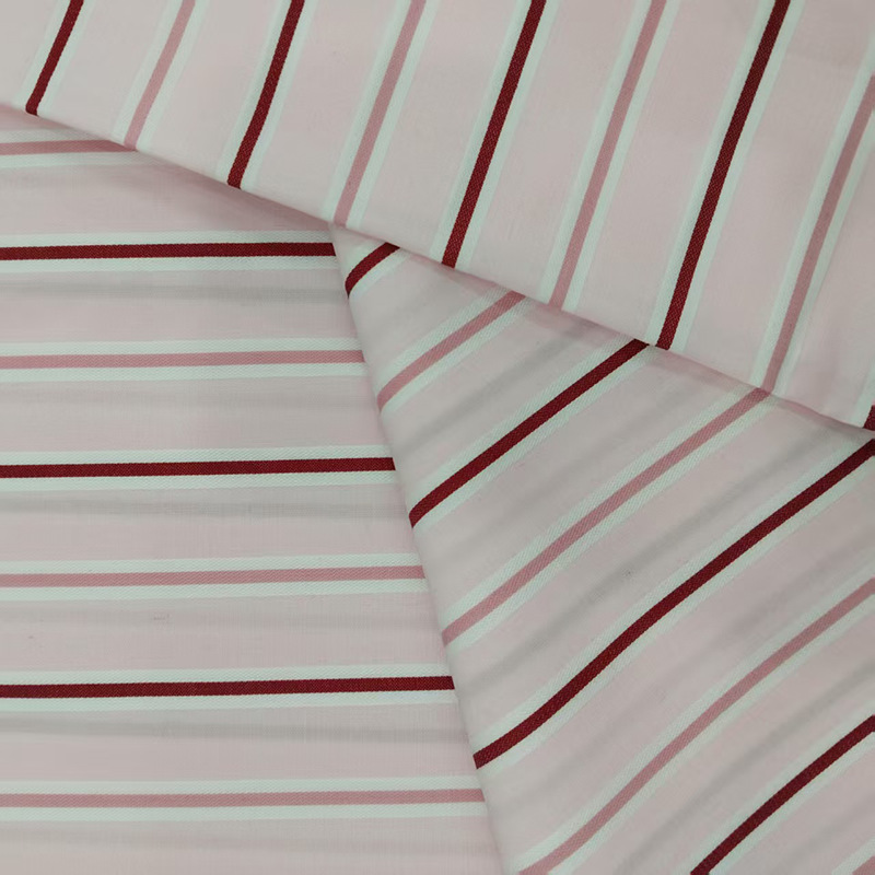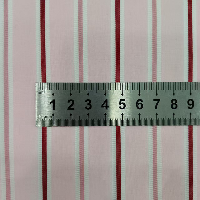 春夏粉系全棉色织条纹面料 新款色织提花条子布料