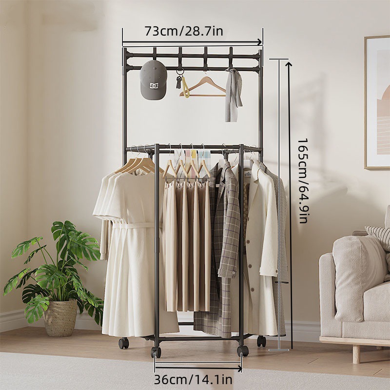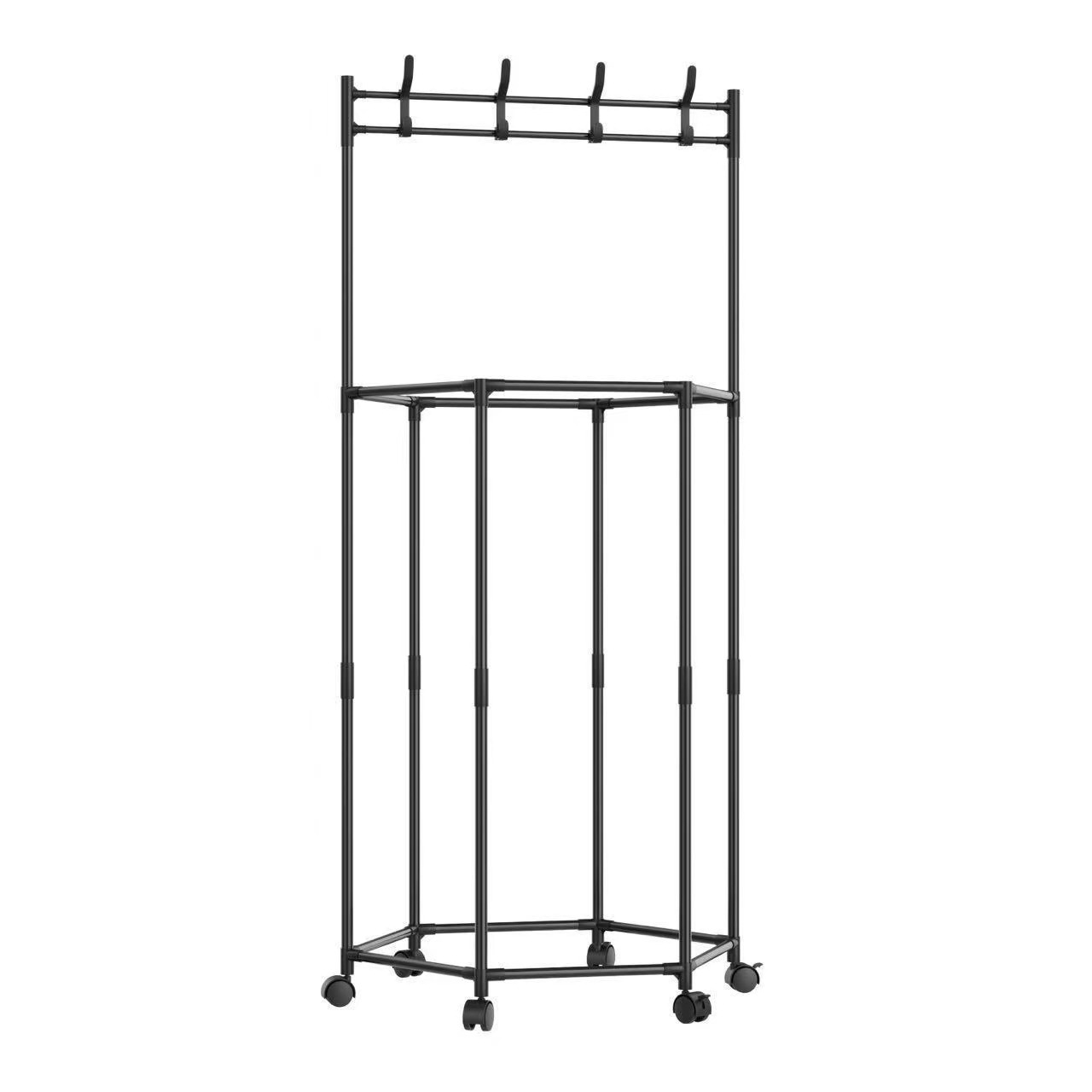 跨境热销多边形晾晒架落地家用挂衣架阳台可移动滑轮挂衣服