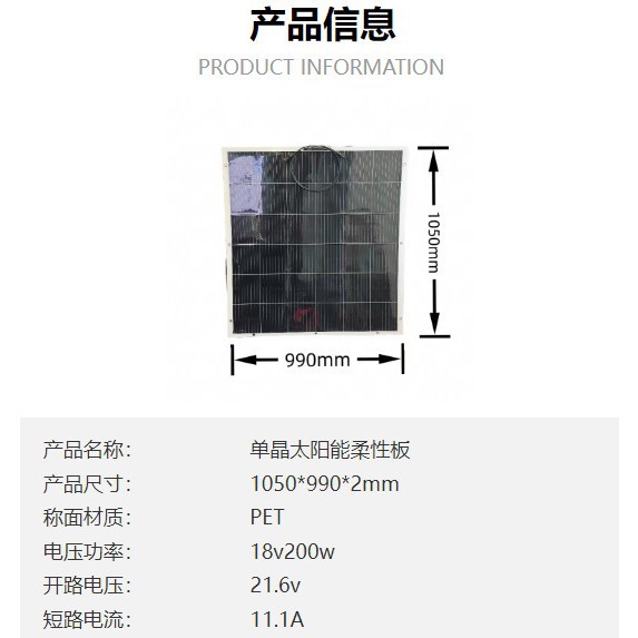 18v200w大功率单晶柔性户外家用太阳能光伏发电板 光伏组件