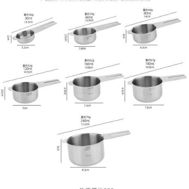 规格 | 304金色量杯7件套 | | 规格 | 304银色量杯7件套 |