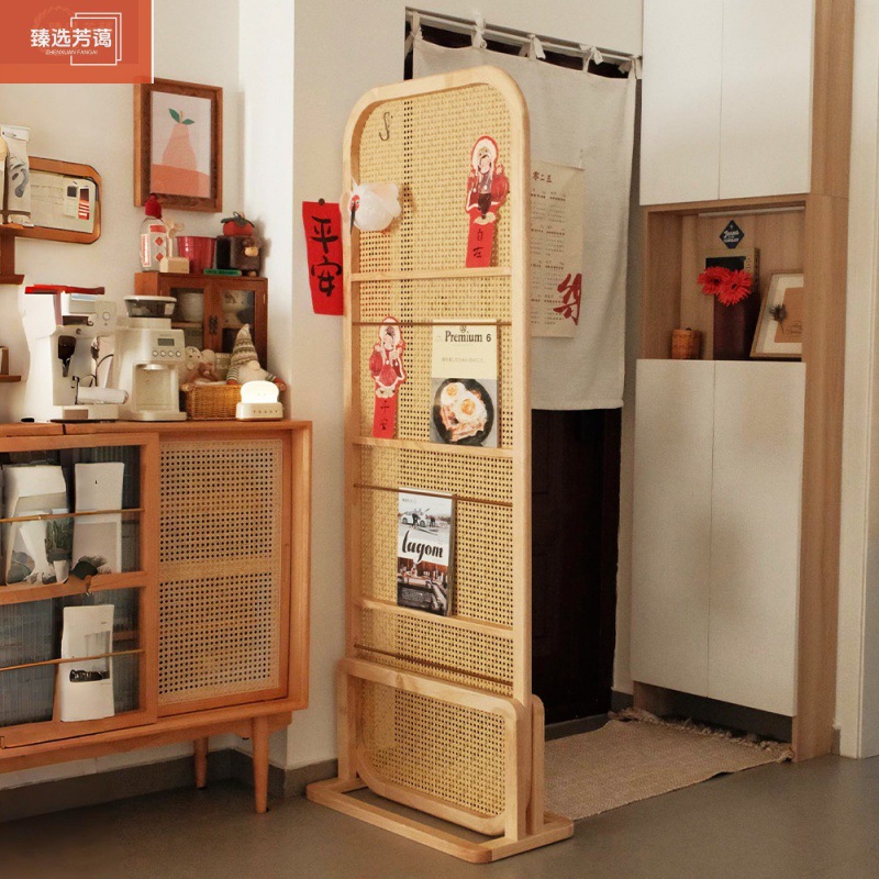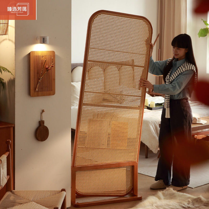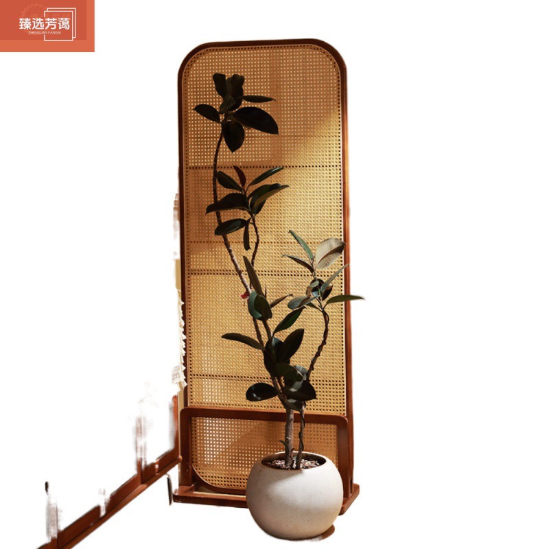 卧室实木沙发置物架日式藤编屏风移动入户正对门隔断客厅玄关座屏