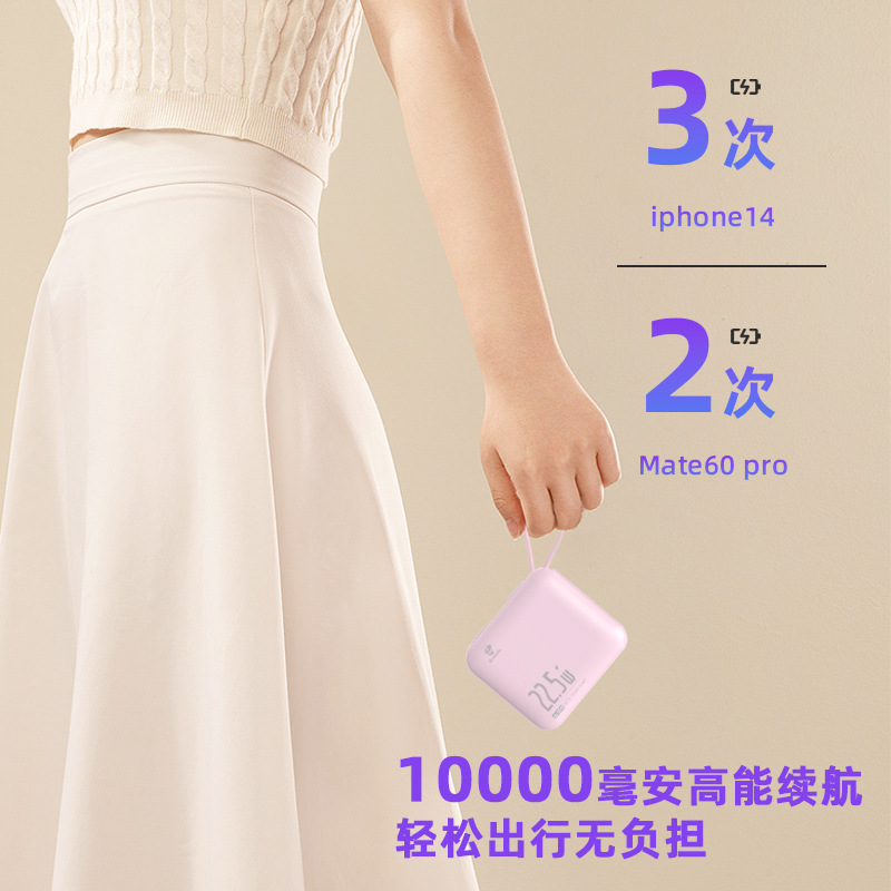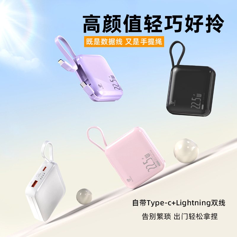 小巧便携充电宝自带线10000毫安22.5W超级快充移动电源礼品爆款