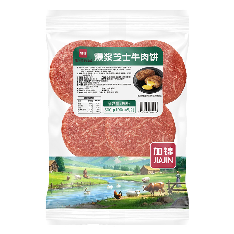 芝士牛肉饼外卖汉堡轻食店腌制半成品流心商用代工贴牌批发商用