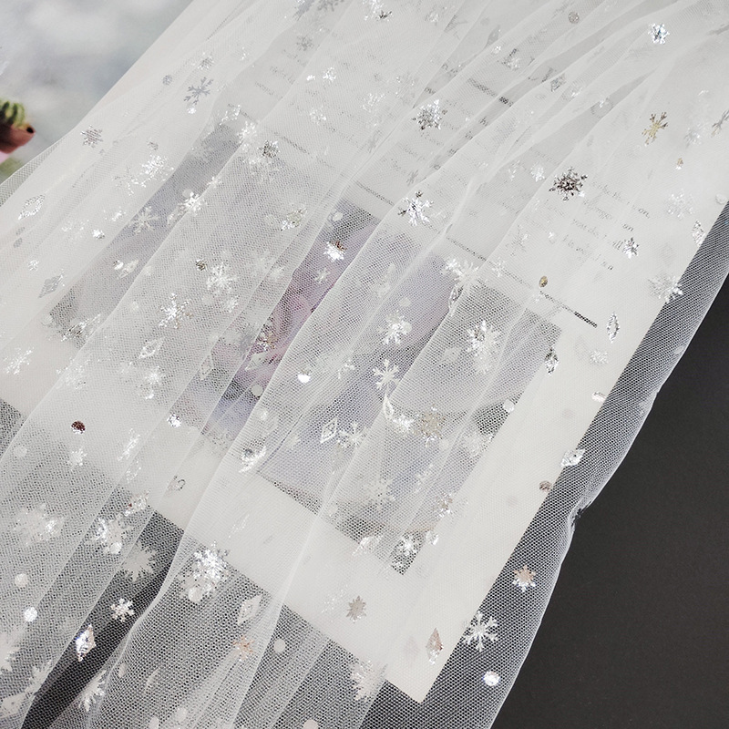 透明白色雪花网纱冰雪奇缘同款服饰装饰辅料布烫银柔软装饰面料
