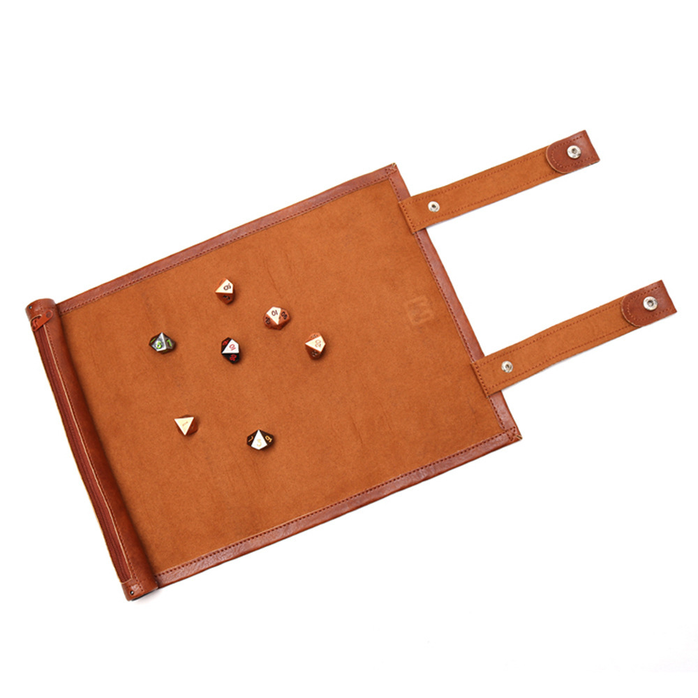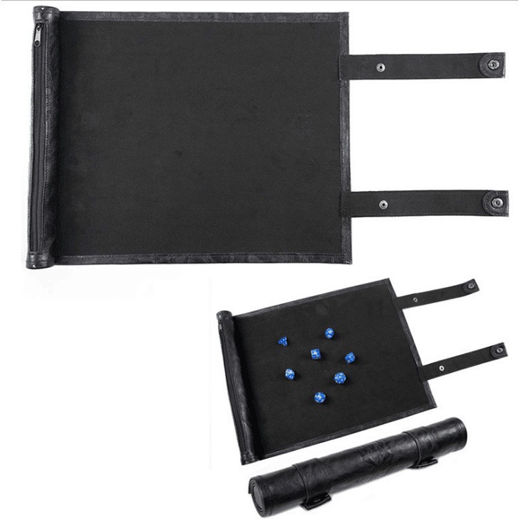 便携卷轴式骰子托盘滚轮pu皮垫带拉链骰子架存储户外旅行游戏皮垫