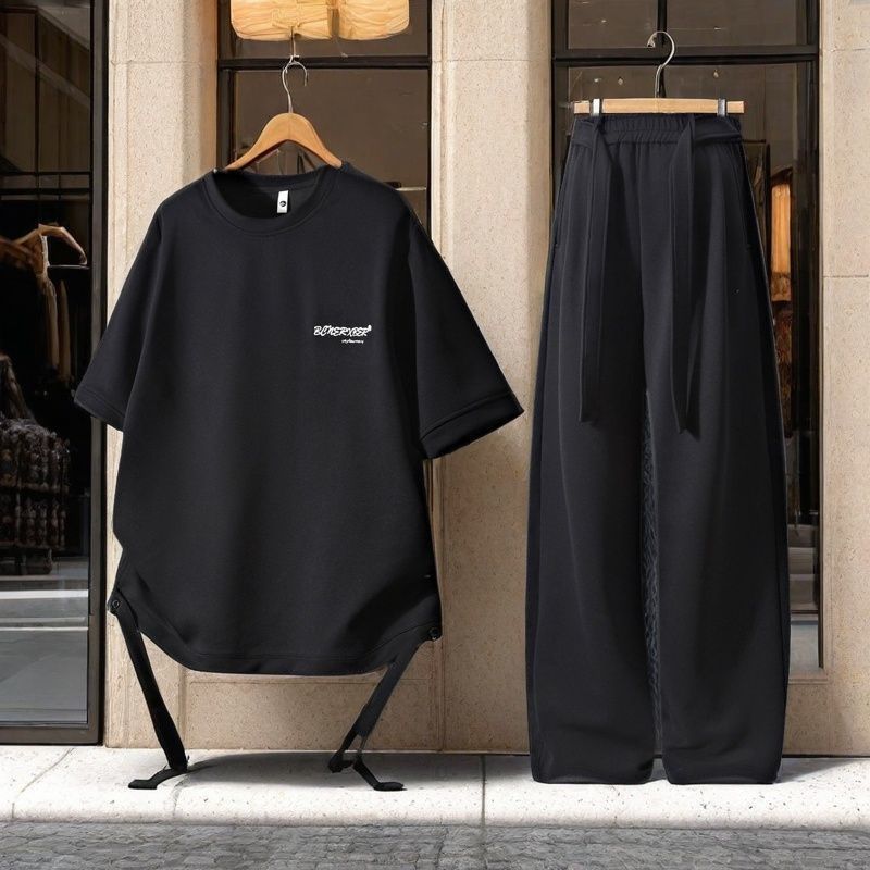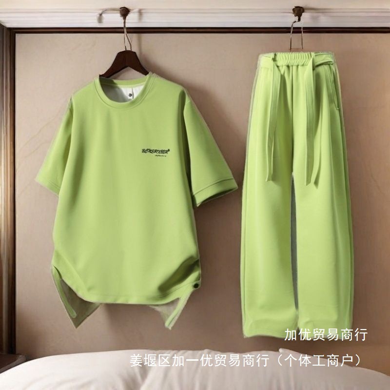 轻夏季男士新款休闲套装运动套装时尚多巴胺短袖一整套