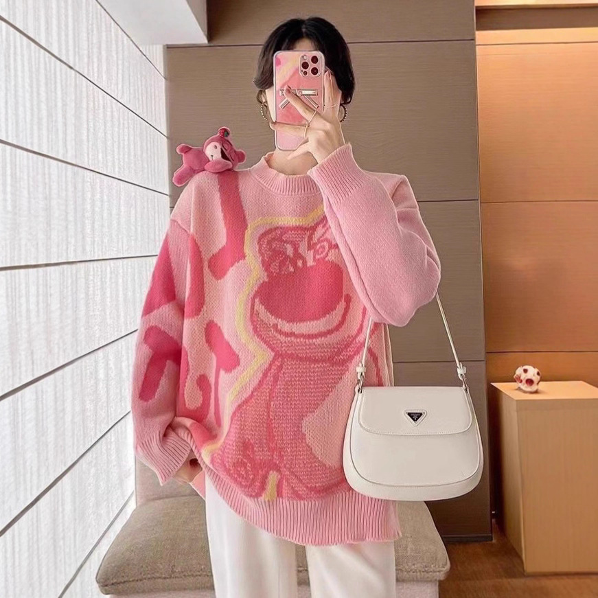 高级感减龄粉色软糯糯毛衣女秋冬中长款慵懒风针织衫温柔韩系上衣