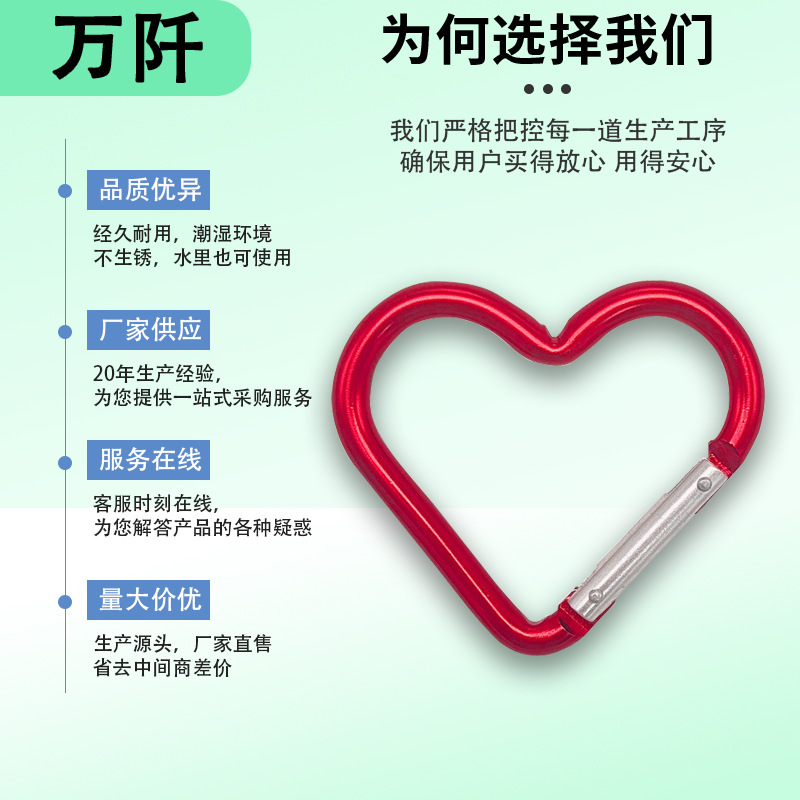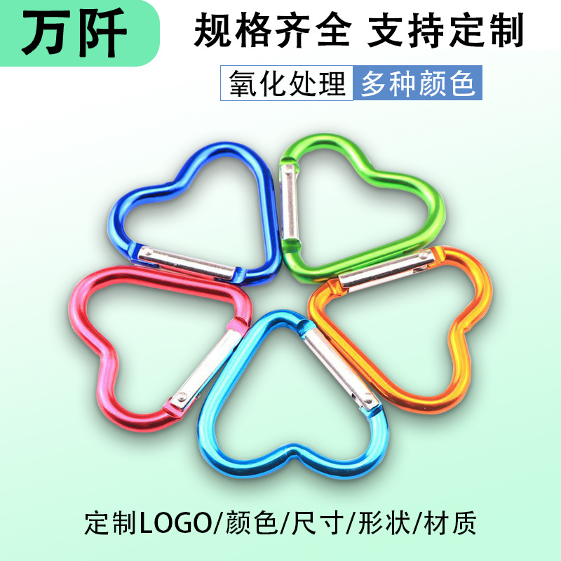 彩色铝合金爱心型登山扣户外背包爱心型挂扣服饰配件高品质铝合金