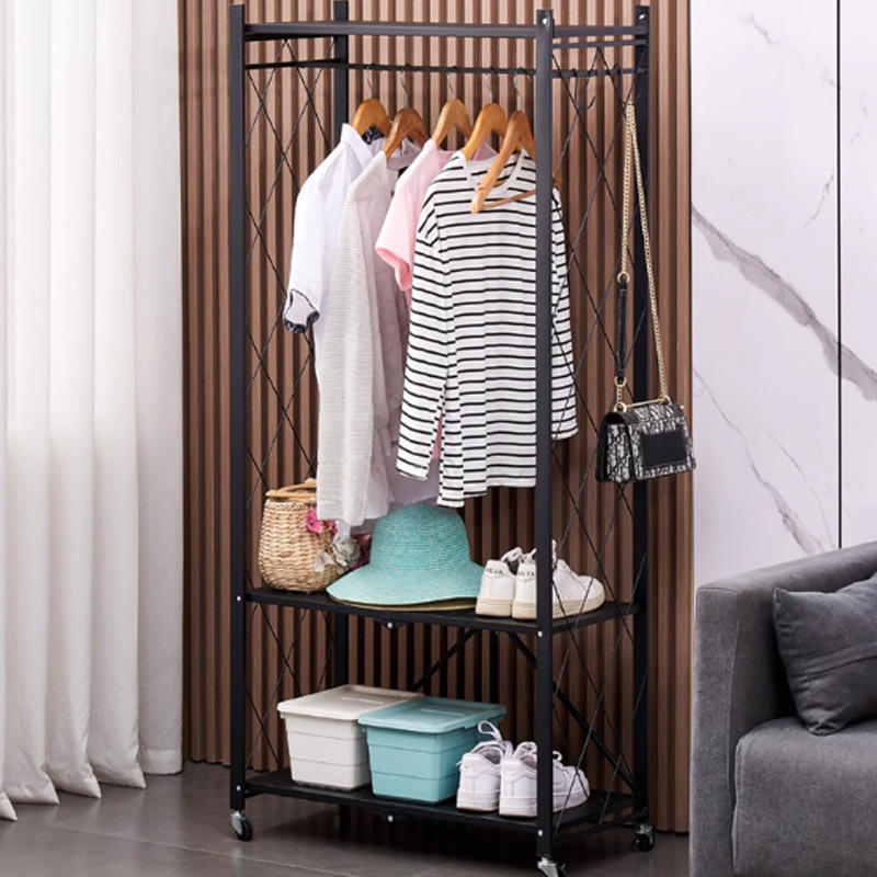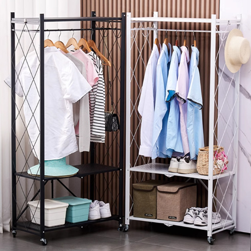 可移动多层收纳储物架子免安装款式折叠衣帽收纳架门厅卧室置物架