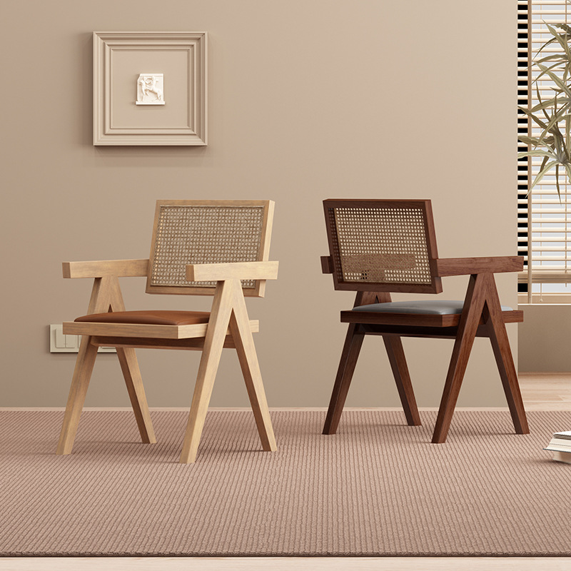 | 颜色 | 樱桃色昌迪加尔椅(编藤坐垫)♢♢♢ | 颜色 | 胡桃色昌迪加尔椅(灰皮坐垫)♢♢♢ |