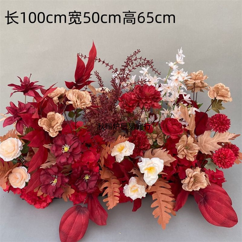 婚庆地排花红色中式订婚宴布置婚礼堂舞台路引花婚庆绢花排仿真花