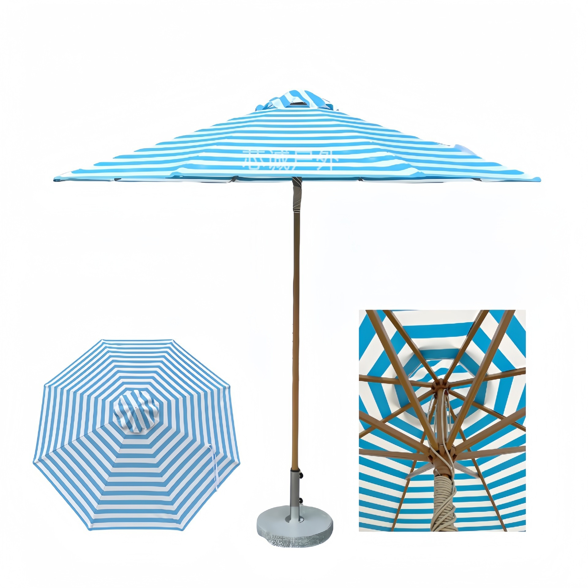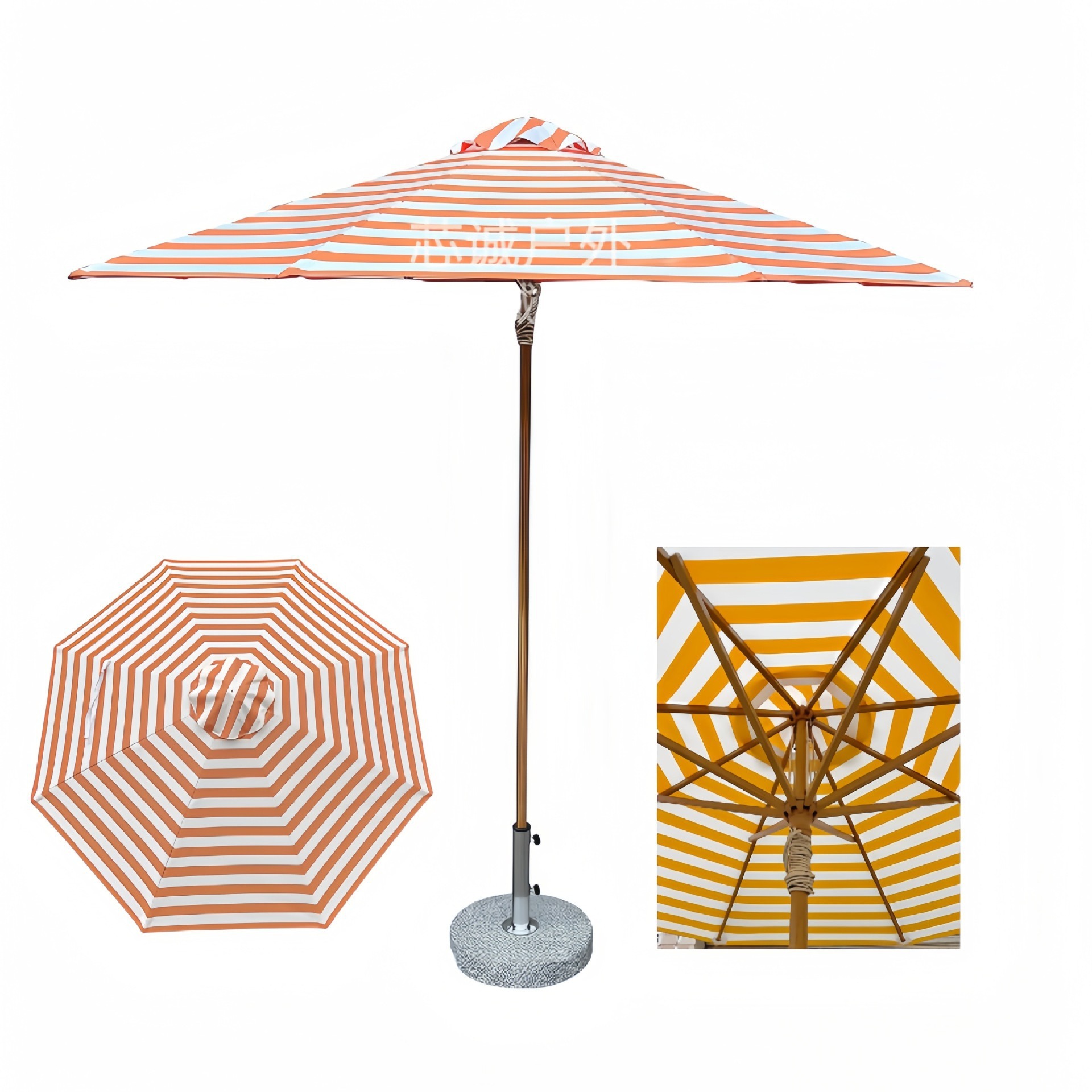 条纹户外遮阳伞沙滩铝合金中柱伞庭院露台太阳伞摆摊伞中柱伞