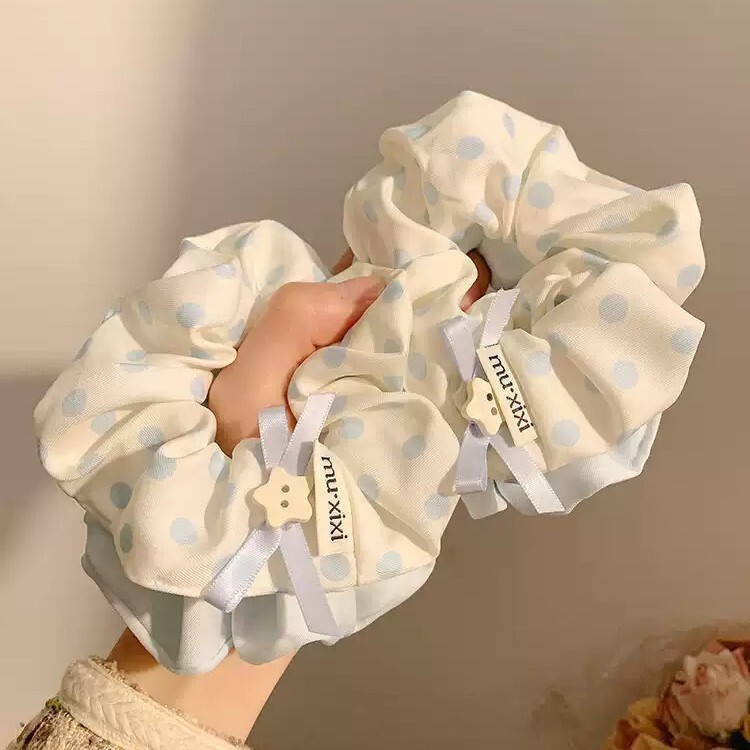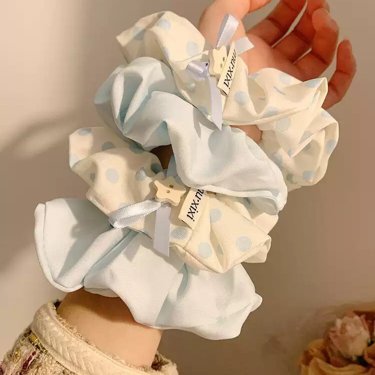 韩系蓝色波点大肠发圈女高级感慵懒风扎头发低马尾发饰简约发圈