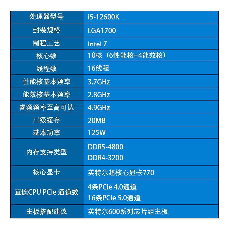 型号 | 12600K | | 货号 | i5 12600K盒装 |