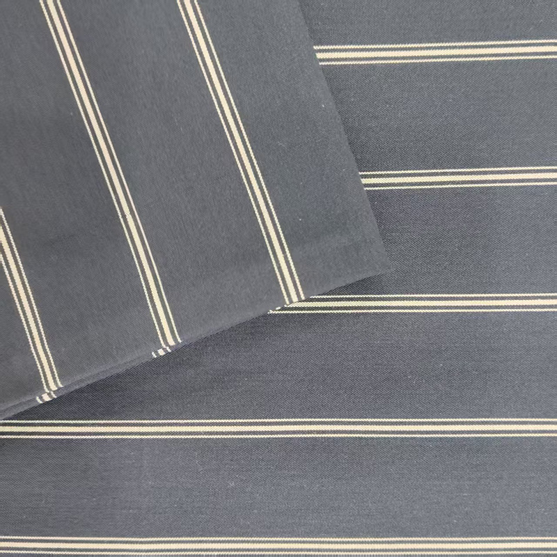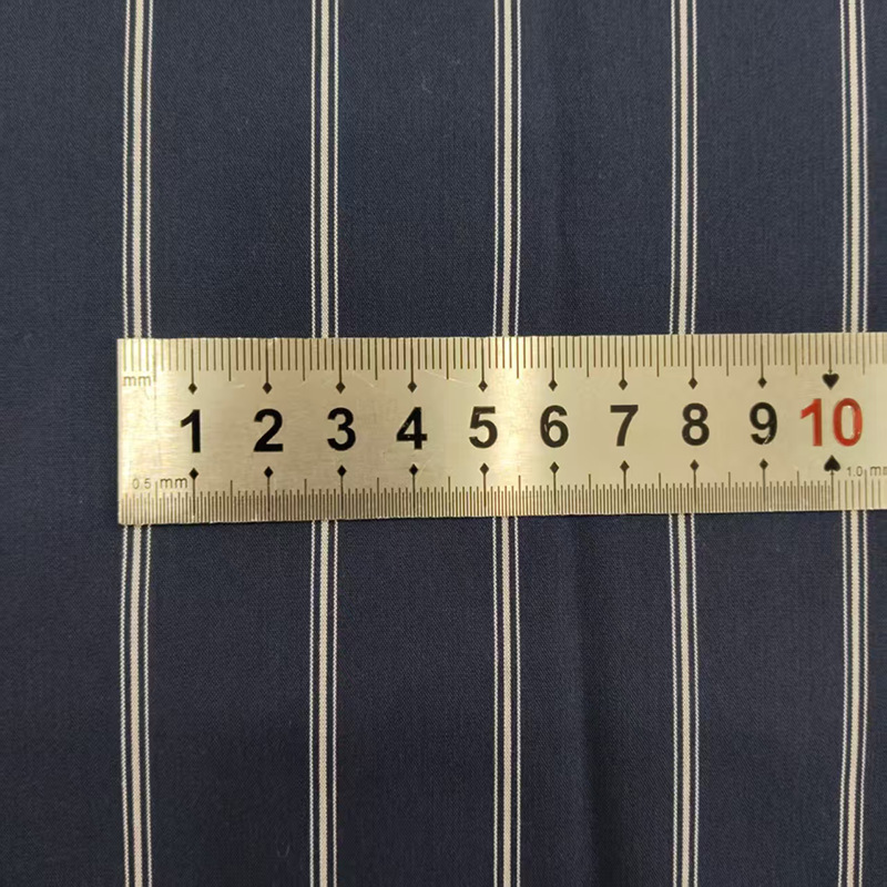 春夏新款锦棉弹力条纹衬衫面料 锦棉藏青混纺条子布料