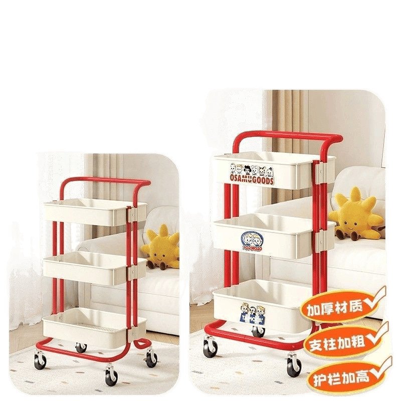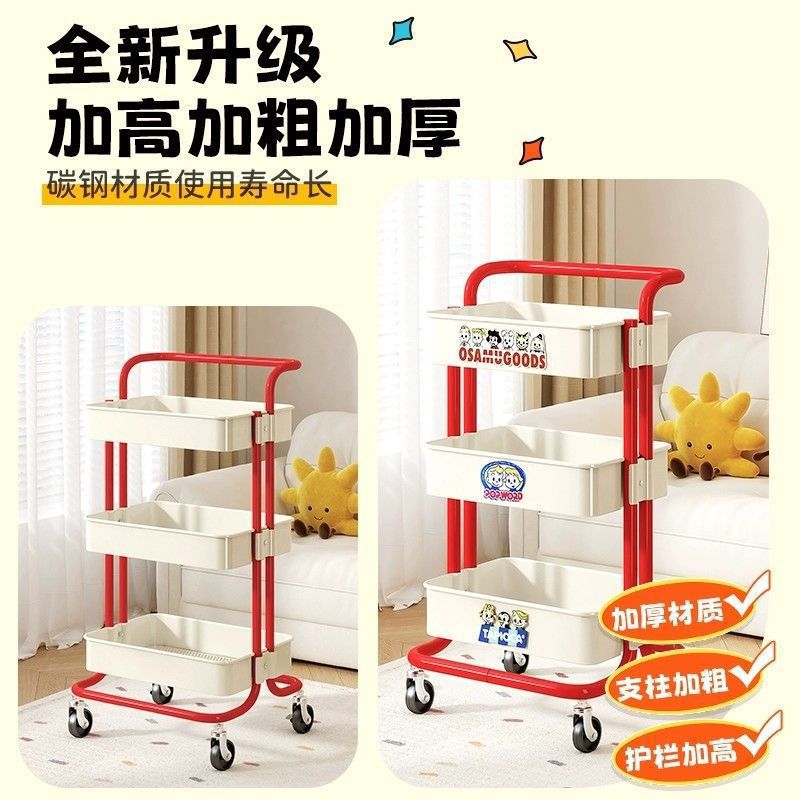 | 颜色 | 【带扶手/16管】碳钢 3层白绿粉筐+白色杆手推车♢★ | 颜色 | 【带扶手/16管】碳钢 3层红色筐+米黄杆手推车♢★ |