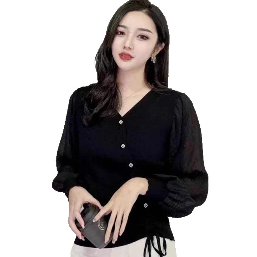 抽绳2025秋新款设计感领长袖女不规则修身抽褶收腰短款女装上衣