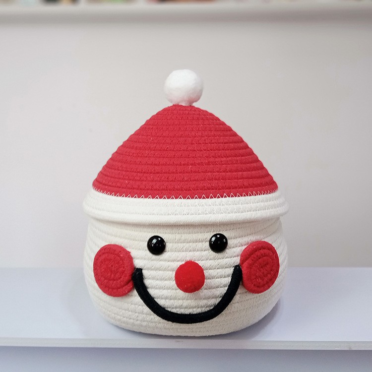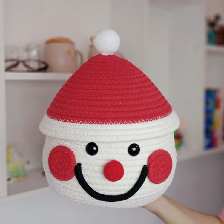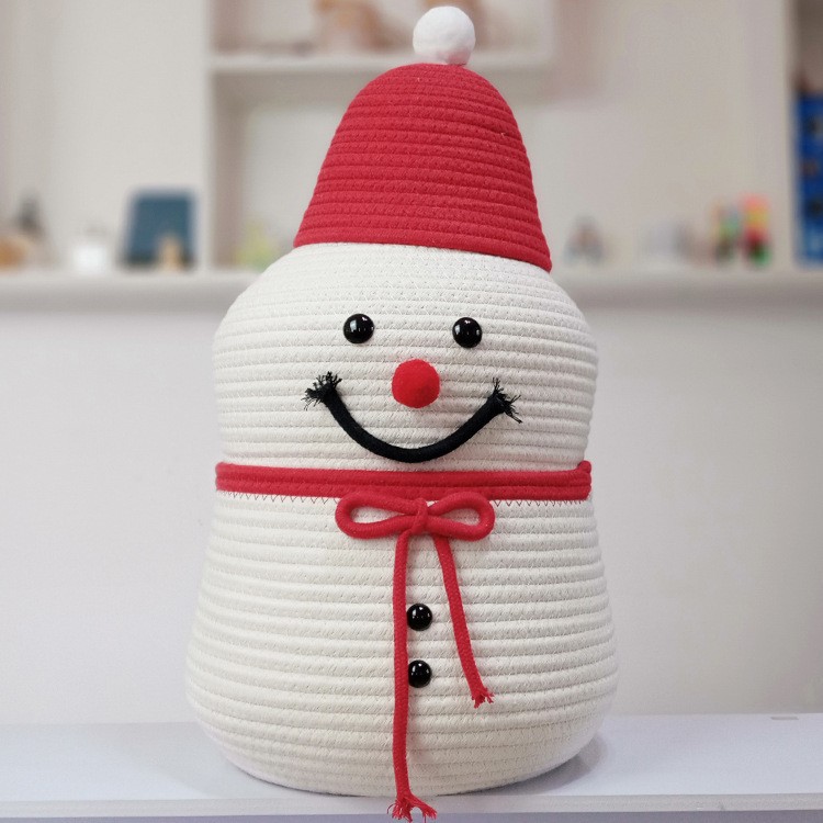 跨境热销雪人卡通收纳筐棉绳编织收纳筐桌面床头茶几收纳筐