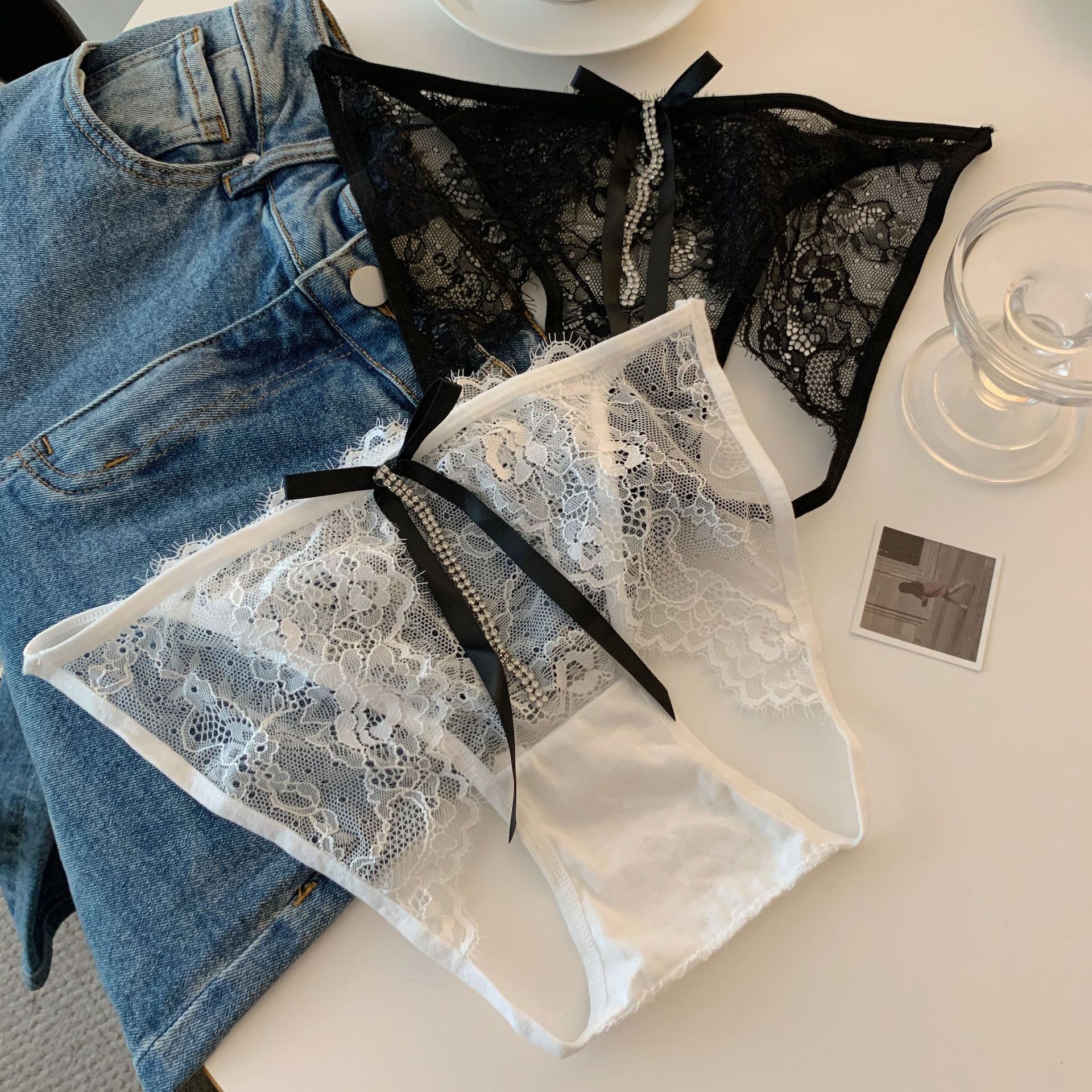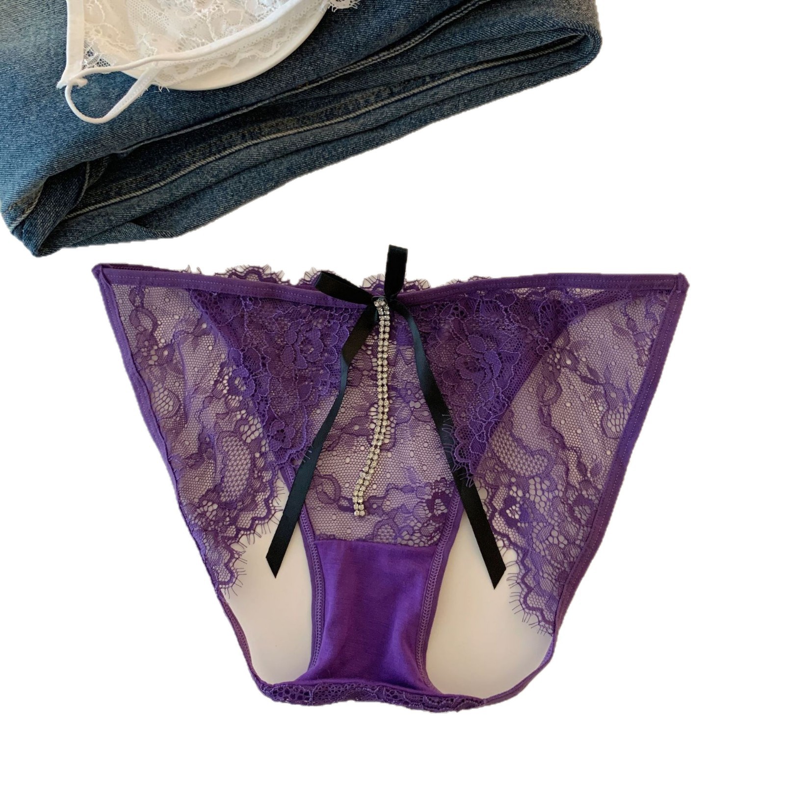 暮夜情调*重工新款美臀蝴蝶结镂空钻链流苏约会心动女内裤开档裤
