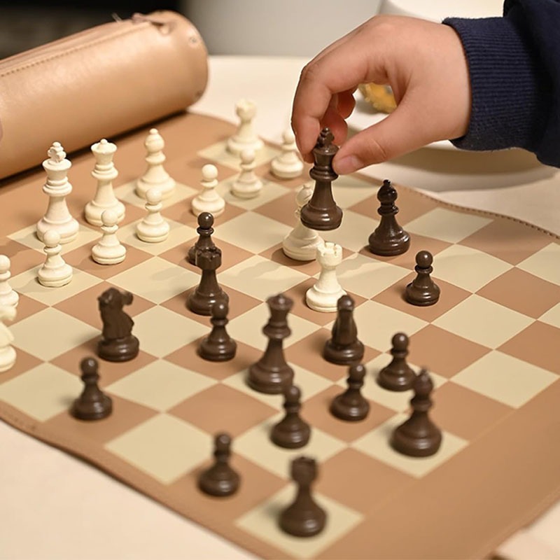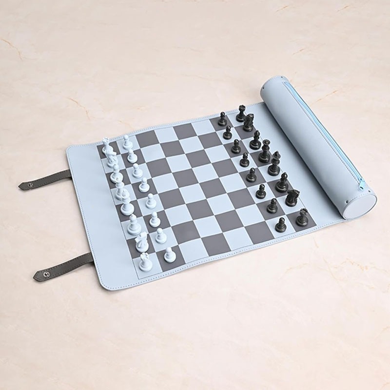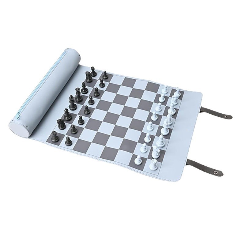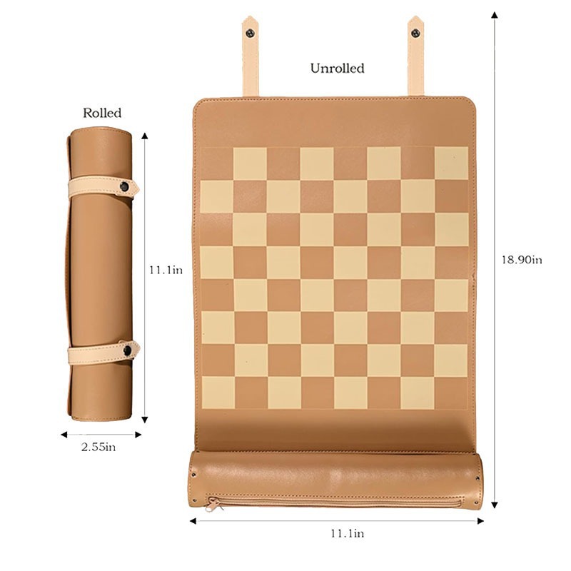皮革卷式国际象棋 双路棋休闲益智便携式西洋棋盘户外游戏套装