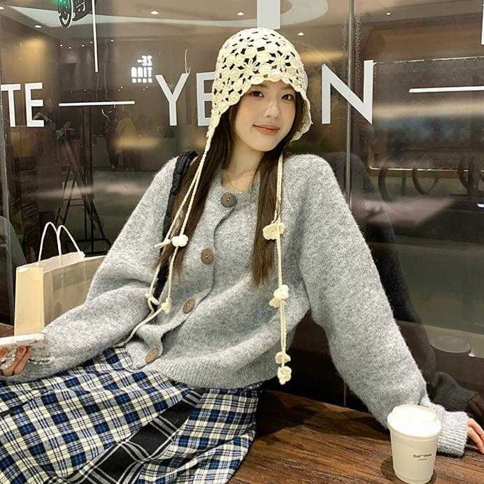 韩版复古圆领针织开衫毛衣外套2025春季新款慵懒宽松软糯气质上衣
