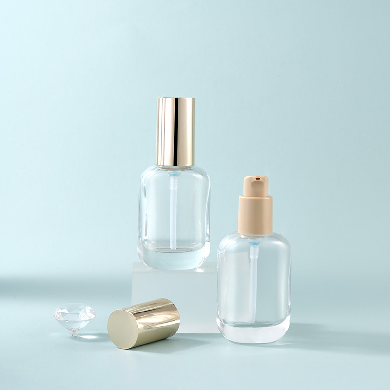 斜肩扁型粉底液瓶30毫升新款分装瓶化妆品玻璃瓶粉色泵按压乳液瓶