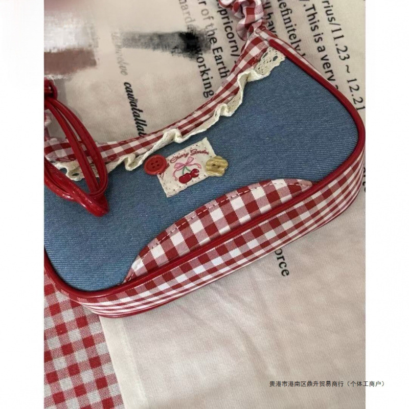 斜挎包包女式新款格子布包单肩包爆款通勤小方包黑粉色牛仔蓝
