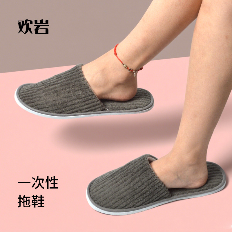 轻奢酒店一次性拖鞋室内民宿会所家用待客加厚防滑珊瑚绒拖鞋批发