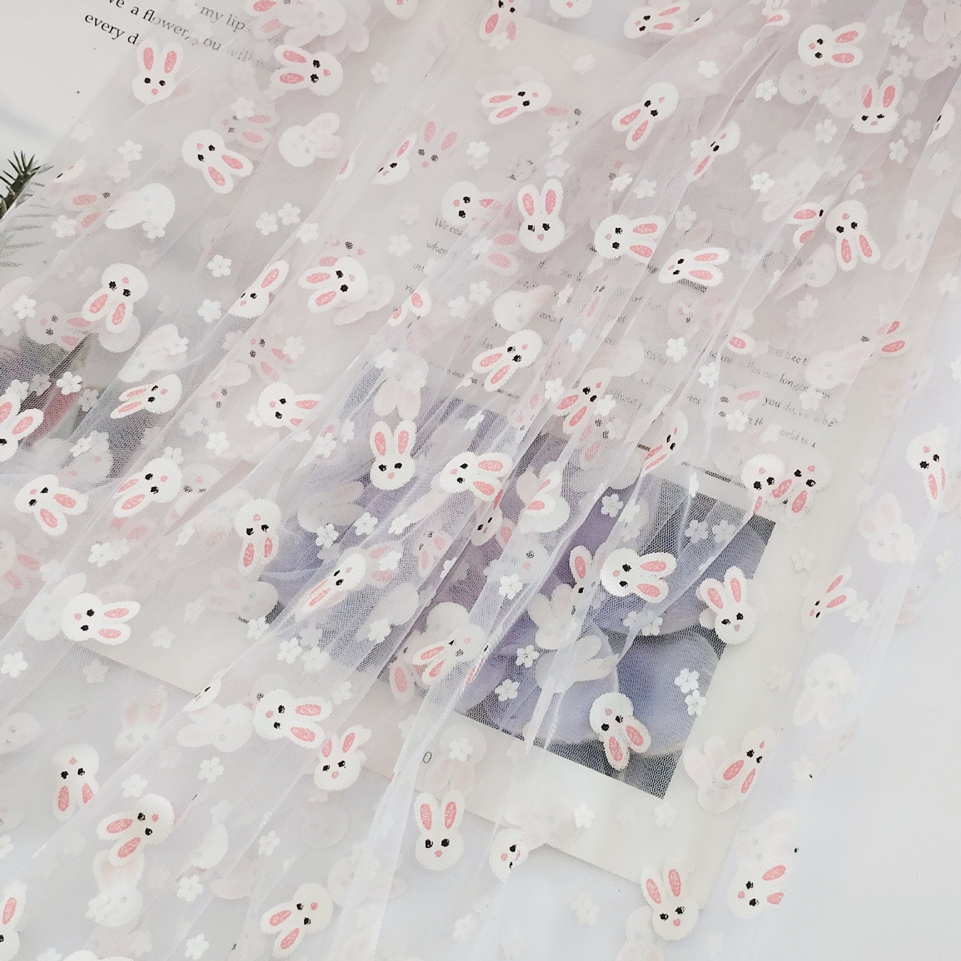 胶印小兔子装饰网眼布卡通童装内衣洛丽塔面料服饰唯美装饰辅料